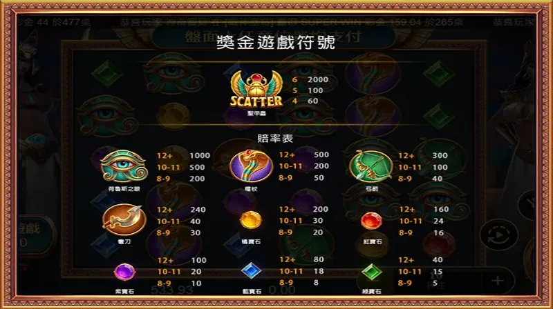 戰神賽特購買免費遊戲功能,玩家可選擇支付當前一轉押注的 100 倍,直接進入免費遊戲模式。